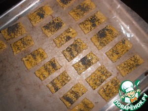 Разрезать каждую часть теста на небольшие полосочки, выложить на противень, смазанный маслом.