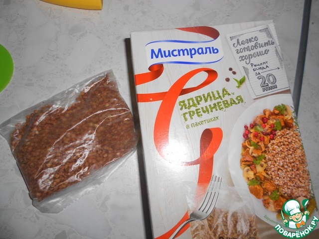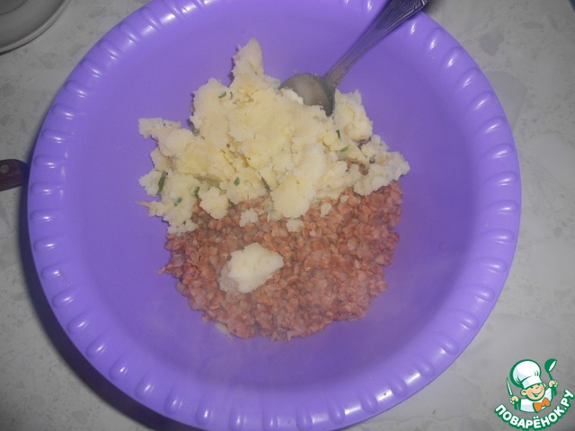 • Гречневую крупу отварить до готовности в подсоленной воде. Картофель очистить, отварить в подсоленной воде и размять в пюре.