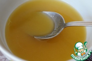Имбирь натереть на мелкой терке, и через марлю выжать из него сок. Должно получится 3.5 столовые ложки. Если не хватило, добавьте еще.