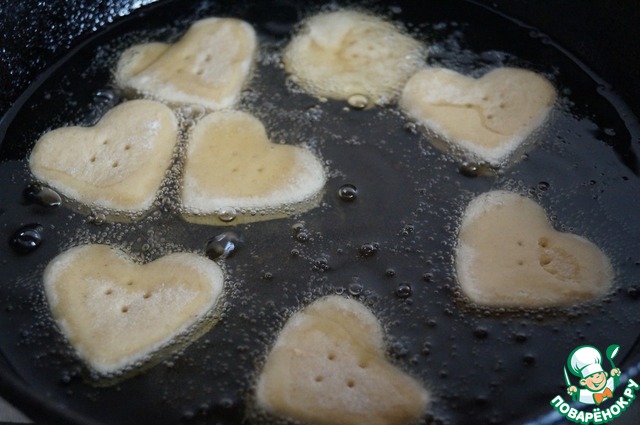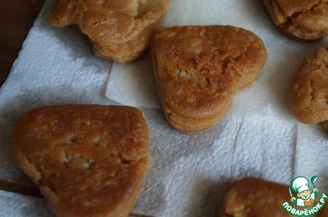 В глубокой сковороде разогреем масло до 140 градусов, и обжарим наши печеньки на слабом огне до золотистого колера в течении 10-15 минут. Не перегрейте масло! Иначе печенье быстро поджарится сверху, а внутри останется сырым.