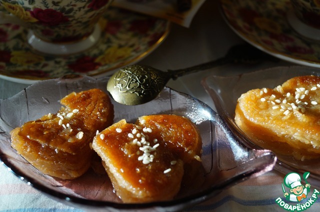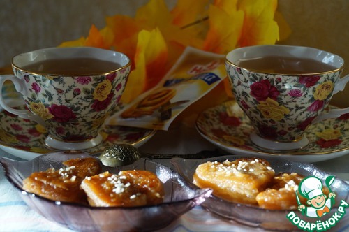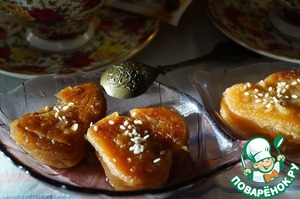 Печенье достать из сиропа, дать лишнему сиропу стечь. Затем посыпать его кунжутом. Приятного аппетита!