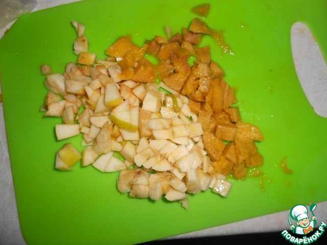 Фрукты нарезать кубиками. Изюм промыть.