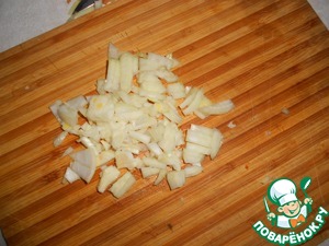 Лук очистить и мелко нарезать. Обжарить на растительном масле до золотистого цвета.