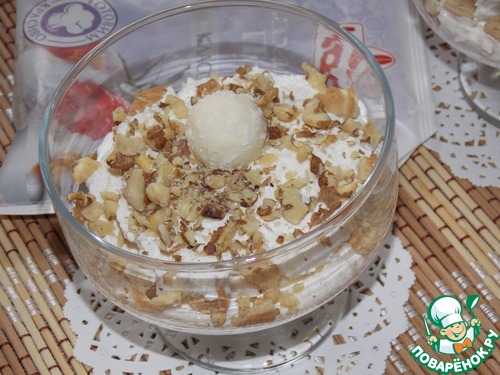 В креманки выложить слой творожной массы, затем разложить печенье.