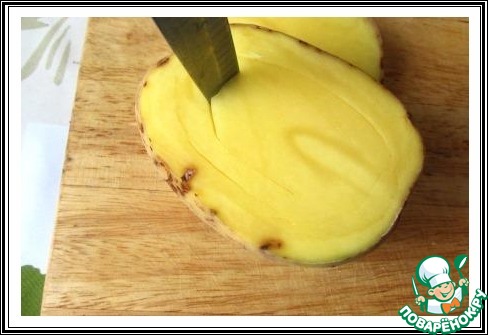 Острым ножом надрезаем мякоть по периметру, делаем два оборота