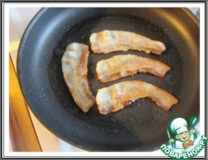Бекон кладем на сухую горячую сковороду и зажариваем с двух сторон до корочки