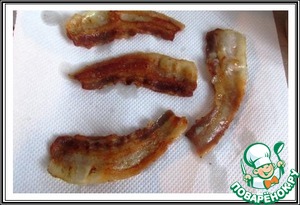 Выкладываем горячий жареный бекон на бумажную салфетку и остужаем