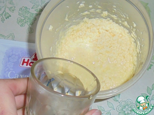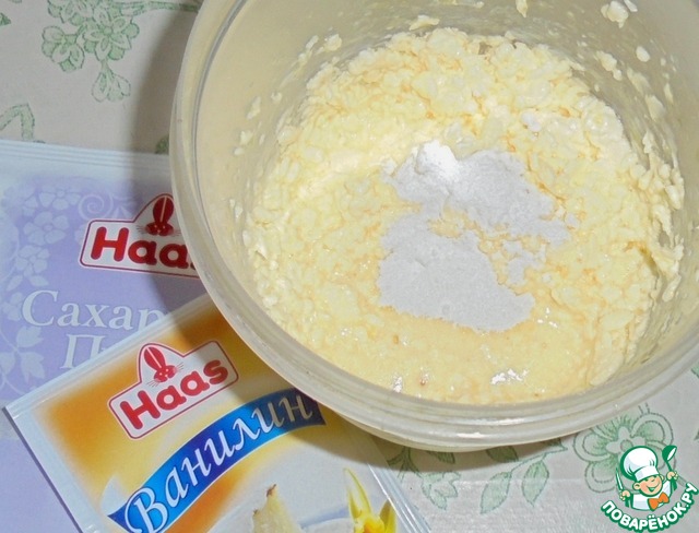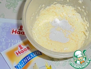 Взбиваем сливочное масло, яйцо и сахарную пудру. Добавляем по вкусу ванилин.