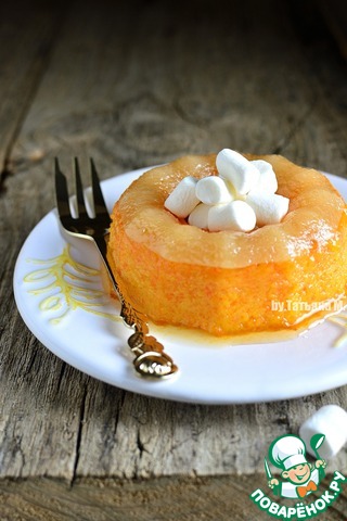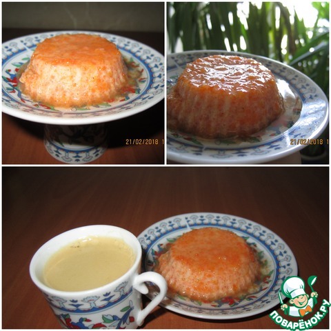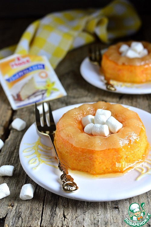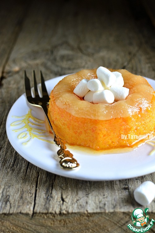 Остудить, вынуть флан из форм на десертную тарелку и подавать! У меня формочки с ямкой по середине, я добавила для украшения маршмэллоу, можно так же украсить ягодами, орехами или дольками фруктов!