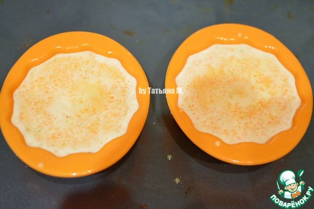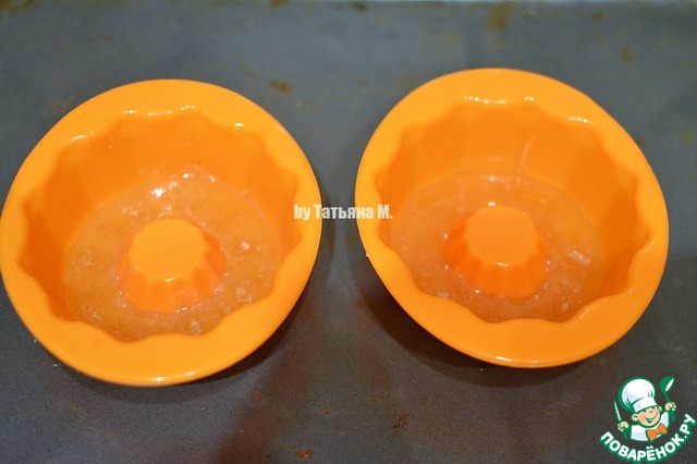 Налить в противень воды, покрывающей формочки почти до верха и готовить при температуре 140 градусов - 1 час;