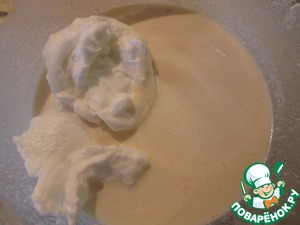 Рикотту выложить в миску, посолить, поперчить, добавить паприку и острый перец, перемешать. Влить сливки с желатином и взбить миксером. Отдельно взбить белки с щепоткой соли до жестких пиков и аккуратно, в несколько приемов, ввести их в смесь рикотты и сливок.
