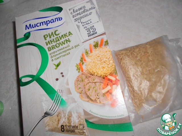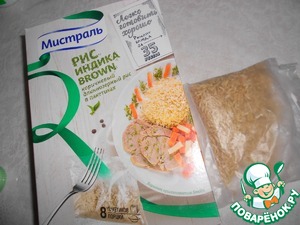 Отварить рис в пакетике до готовности.