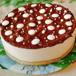 Спасибо за хороший рецепт! Приготовила на праздники - понравился! Шоколадной пастой смазывать не стала, просто, отобрала немного творожной основы, подкрасила ее и украсила сверху тортик капельками по спирали, провела по капелькам зубочисткой - они превратились в сердечки - красиво! Творога добавила 1,200 кг на 500г. маршмеллоу, которые купила за 300 руб.( полкиловая упаковка), так что тортик вышел совсем не дорогой. Суфле нежнейшее получилось, застыл прекрасно, несмотря на то, что творога было больше. Любителям чизкейка - рекомендую!