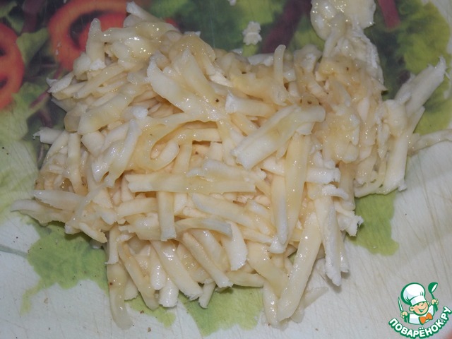 Банан натереть на крупной тёрке.