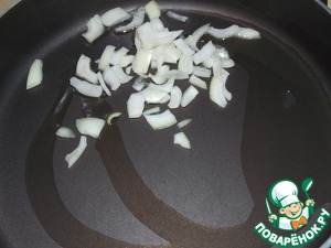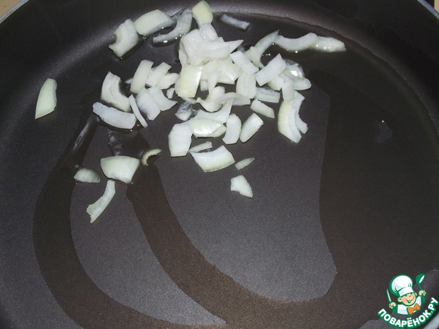 Лук нарезать и обжарить на растительном масле 2-3 минуты.
