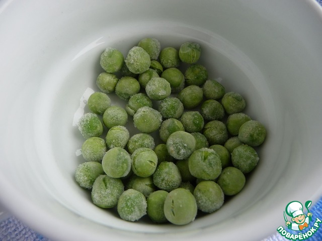 Зеленый горошек разморозить в микроволновке 30 сек.