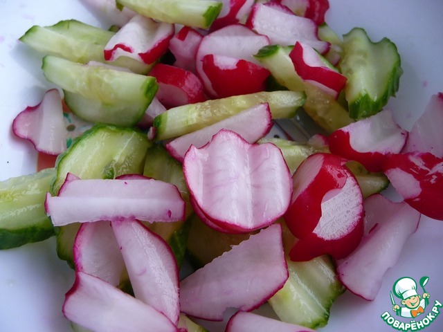 Так же нарезаем редис.