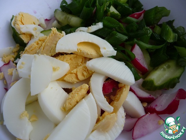 Нарезаем яйцо.