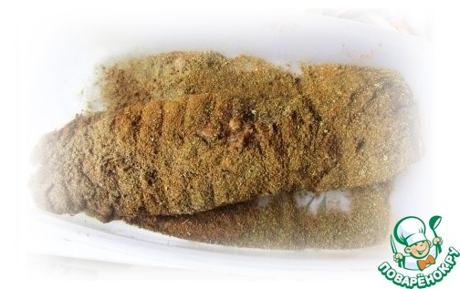 Понедельник 10 утра (через 3 суток): достаю лоток из холодильника и вынимаю мясо, легко осушаю его бумажным полотенцем. Готовлю приправы и подходящую форму или лоток. -