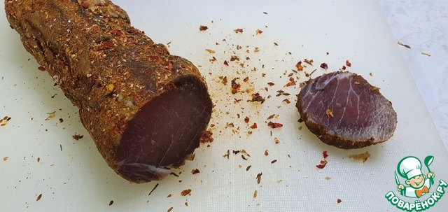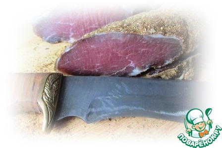 Захотелось мне как-то такого мясца, первым делом просмотрела рецепты поварят. Рецептов достойных много, но они не убедили меня в необходимости приготовления этого деликатеса. Мне представилось, что либо их разместили люди, которые с детства готовят это мясо, либо люди, наделенные свыше особым поварским даром: использовать "3-5 столовых ложек соли", ну так 3 или 5? Кто-то добавляет сахар и водку, кто-то вялит 5 дней, кто-то - целый месяц, кто-то требует наличия холодильника с функцией No Frost. Будучи по образованию и по сути "технарём", я искала рецепт с точными пропорциями и строгими рекомендациями. Хочу конкретики и гарантий! Хочу сохранить здоровье и не стать в одночасье вдовой. Такая вот зануда... И нашла рецепт, затем путем аналитических изысканий и практических опытов подогнала его под свой вкус, опробовала его не один раз на многочисленных родственниках и гостях, и теперь расскажу вам, как я готовлю такое мясо во всех подробностях. Думаю, и мой рецепт кому-то пригодится.