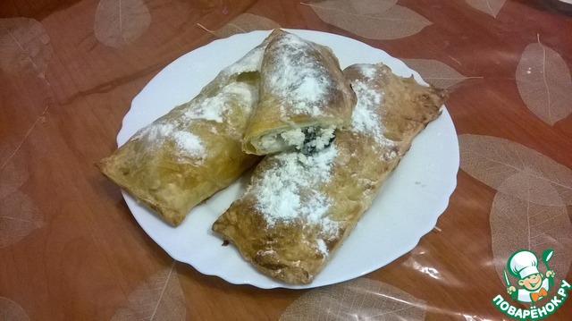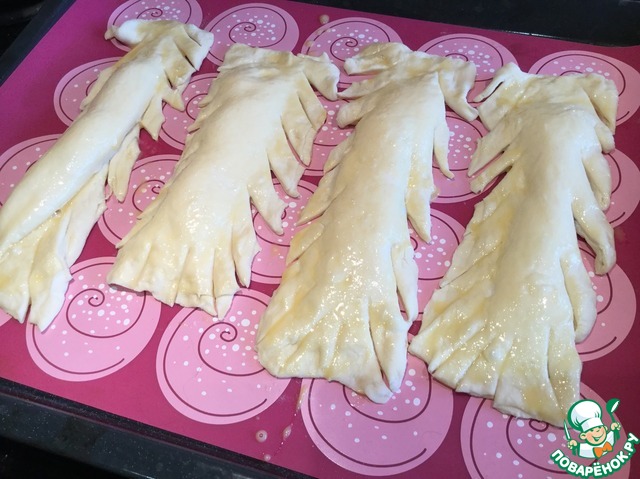 Внахлест заверните тесто, сформировав прямоугольные пирожки. С боков сделайте надрезы.
