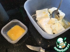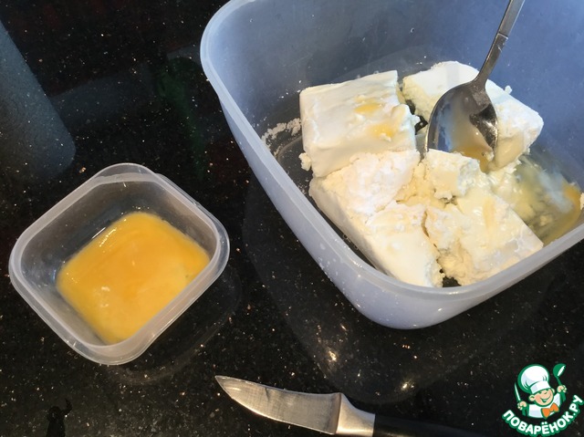 Творог разотрите с 50г сахарной пудрой Haas с ароматом ванили.