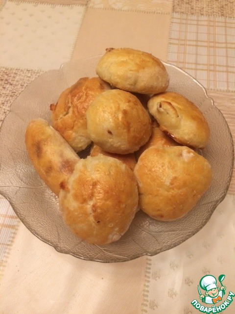 В желток добавьте 1 ст. л. холодной воды, слегка взбейте и смажьте пирожки.