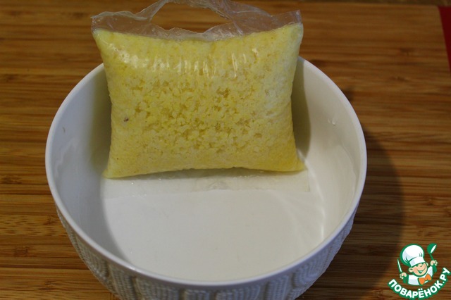 В кипящую воду опускаем пакетик с пшеном и варим 15 минут.