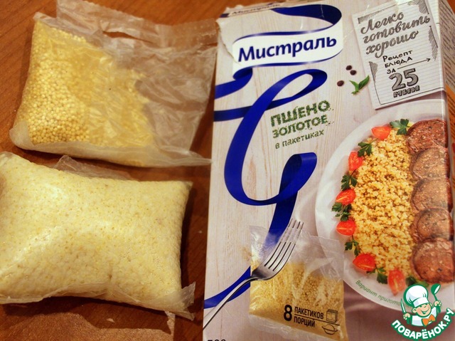 - Пшено (Золотое в пакетиках ТМ "Мистраль") — 1/2 пакет.