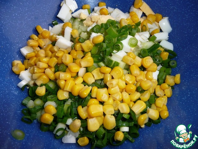 - Кукуруза (консервированная) — 2 ст. л.