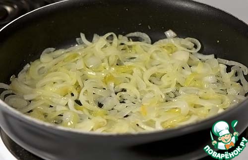 Лук слегка обжарить на сковороде, как только он станет мягче добавить шпинат.