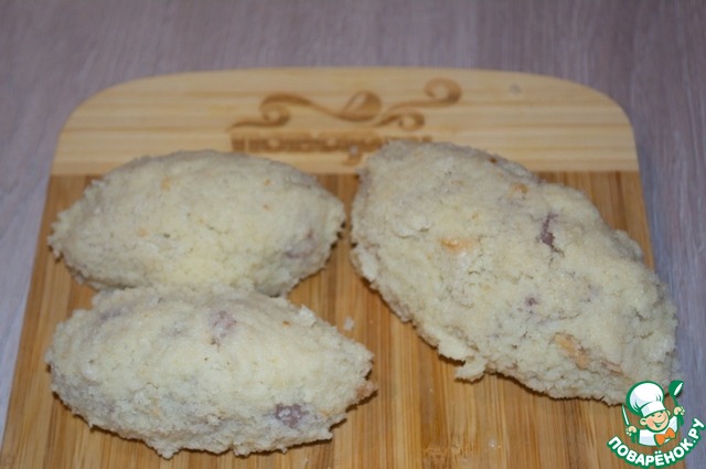 Обваливаем в муке, затем обмакиваем во взбитое яйцо с молоком (льезон), и обваливаем в панировочных сухарях. -