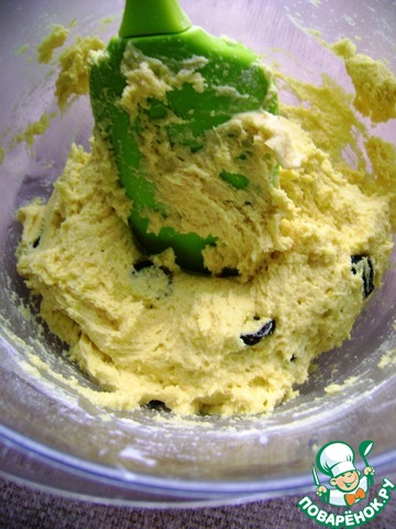 Добавить промытый и хорошо обсушенный изюм. Силиконовой лопаткой замесить нежное, но густое тесто.
