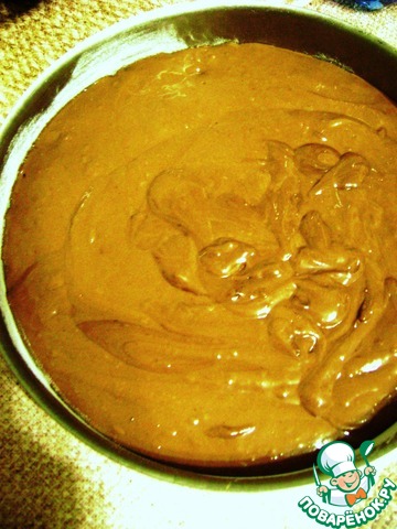 Разрезать на два- три пласта и промазать густым повидлом. У меня абрикосовое. Сложить пласты и придавить сверху гнетом для пропитки и склеивания.