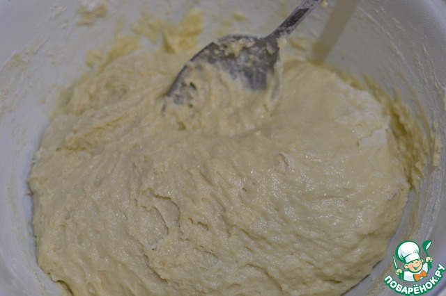 Вот такое тесто получается, лучше пожиже, если тесто будет густым, то в готовом изделии оно будет жестким.