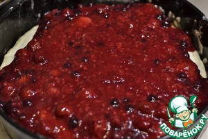 Миндальная масса подсыхает, а тесто пропитывается масляно-ягодной смесью. -