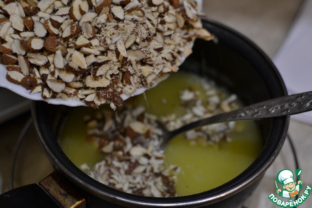 Добавляем миндаль, доводим до кипения при постоянном помешивании. Оставляем остывать.
