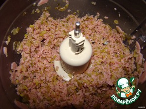 Ветчину и оставшиеся огурцы перемолоть на комбайне.