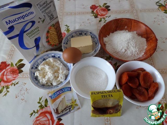Ингредиенты для «Пирог с пшеном, творогом и курагой»:
