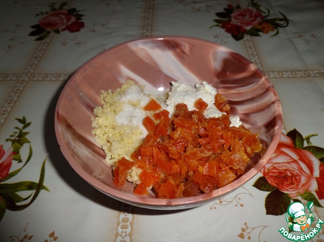 Рецепт «Пирог с пшеном, творогом и курагой»: