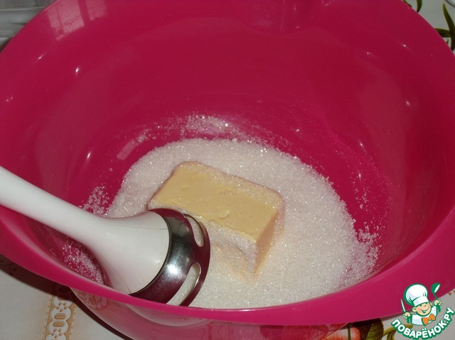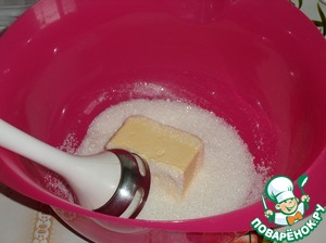 Теперь приступим к приготовлению теста. В чашку выкладываем сливочное масло и сахар. Солим. Взбиваем с помощью блендера или миксера.