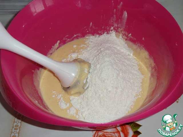 Добавляем просеянную муку.