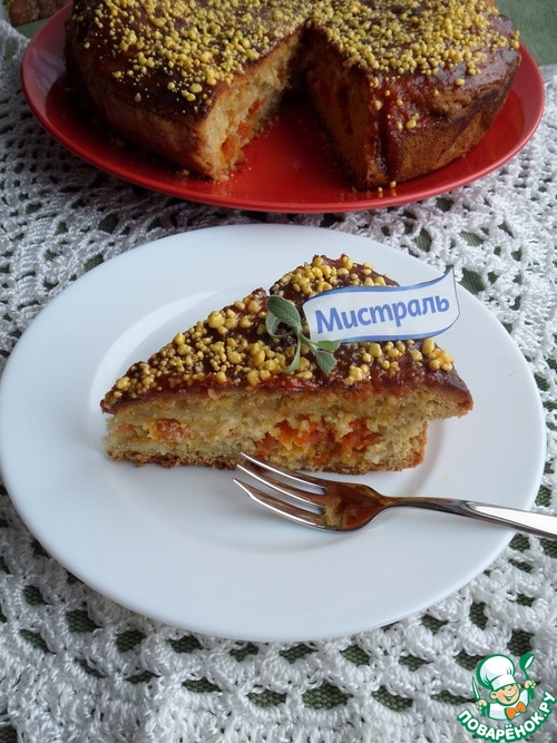 Пирог с пшеном, творогом и курагой