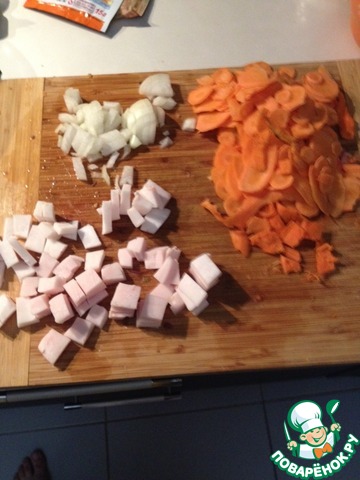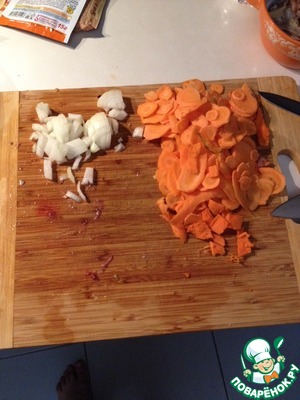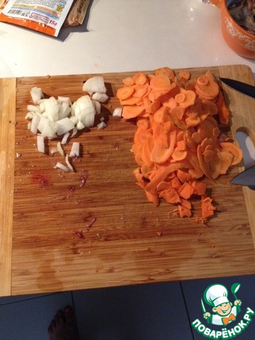 Нарезать морковь и лук. Морковь можно натереть на крупной тёрке. Я резал.