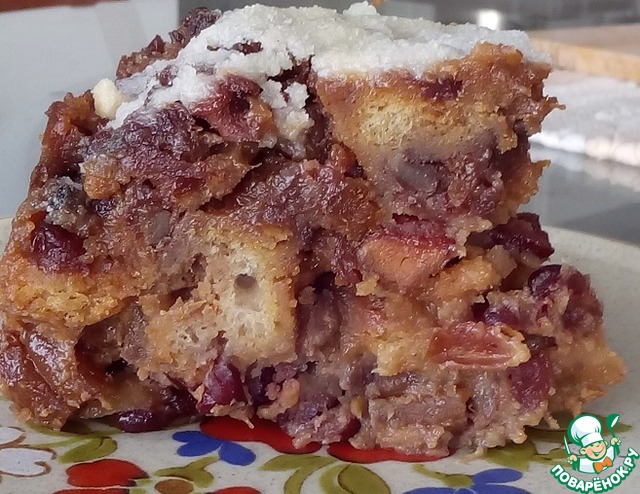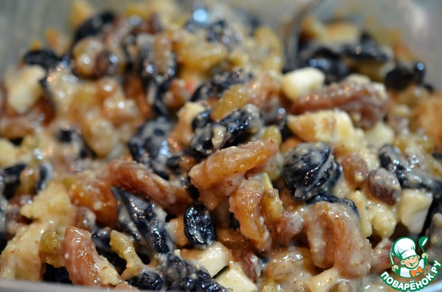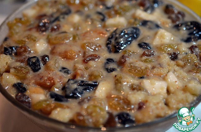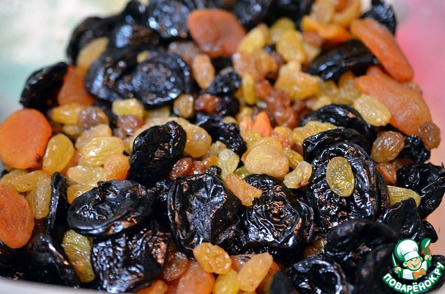 [+2]но я сильно отошла от рецепта в наборе ингредиентов, брала курагу, сушеные яблоки и бруснику, последняя хотя и была очень сладкая, но не настолько, как изюм.