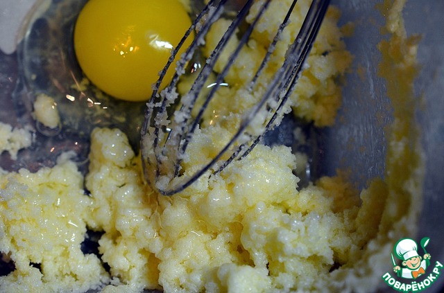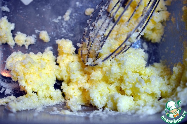 Масло взбить с сахаром.