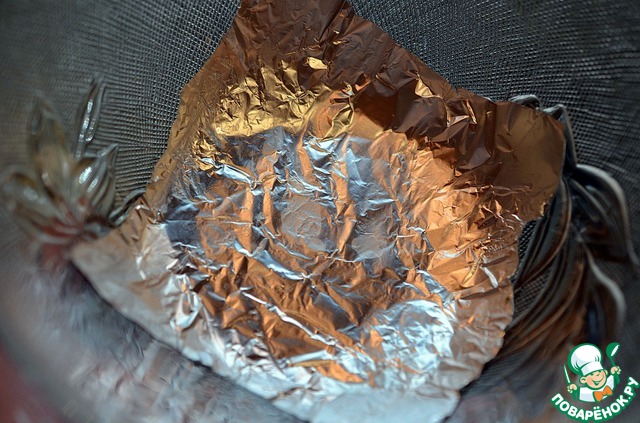 На дно положить кусочек фольги.