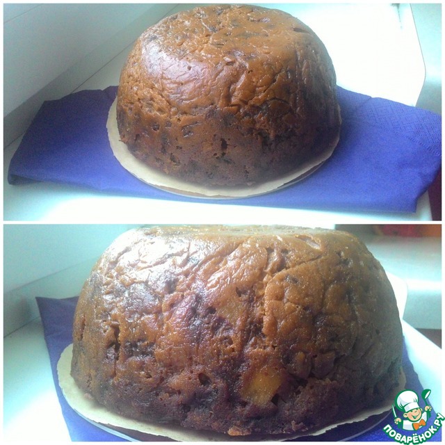 Готовят английский пудинг непременно на водяной бане, и длится это несколько часов.