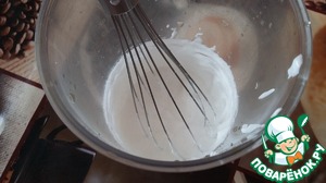 • Приготовим начинку: белок взбить с половиной стакана сахара до белых пиков.