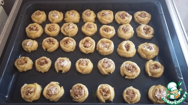 • Цветы выложить на противень на расстоянии 1-2 см друг от друга, смазать желтком. Выпекать в духовке при температуре 180 градусов 30 минут.